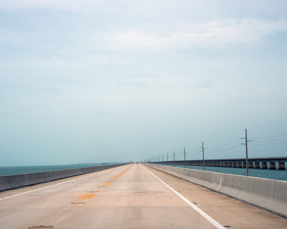 In 1954, photographer Berenice Abbott journeyed along the length of U.S. Route 1. From Florida motels to Maine potato farmers, Abbott memorialised communities up and down the East Coast. During this trip, she shot more than two hundred and fifty 8×10-inch photographs, and around one thousand smaller images using her Rolleiflex camera, representing her largest portfolio of photographs devoted to a single subject. In 2014 after the publication of David Campany’s book, The Open Road: Photography & the American Road Trip, Anna Fox and Karen Knorr decided that they would make a collaborative road trip together based on Berenice Abbott’s Route One.
